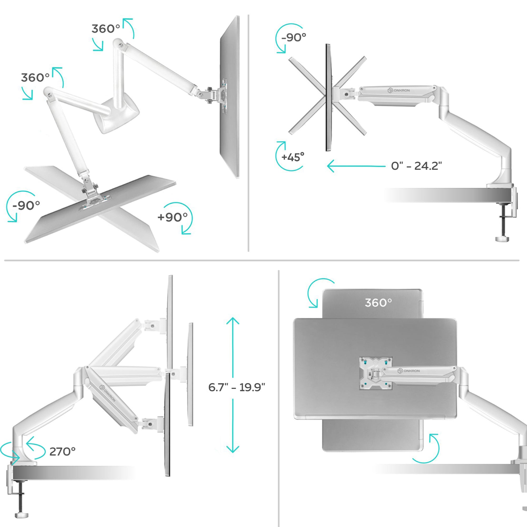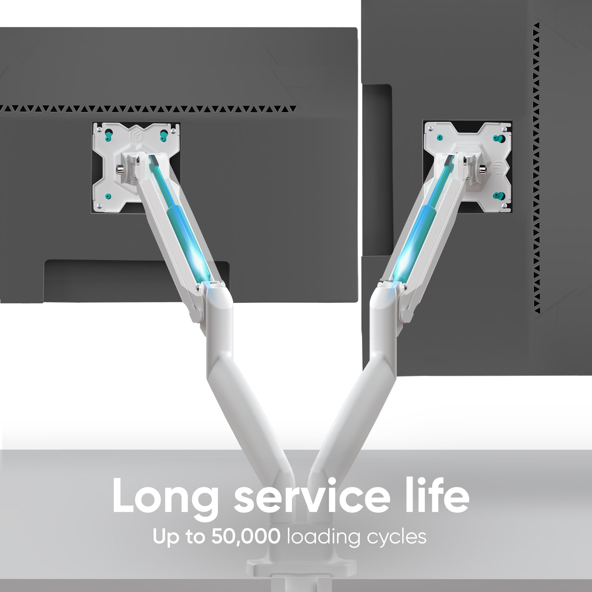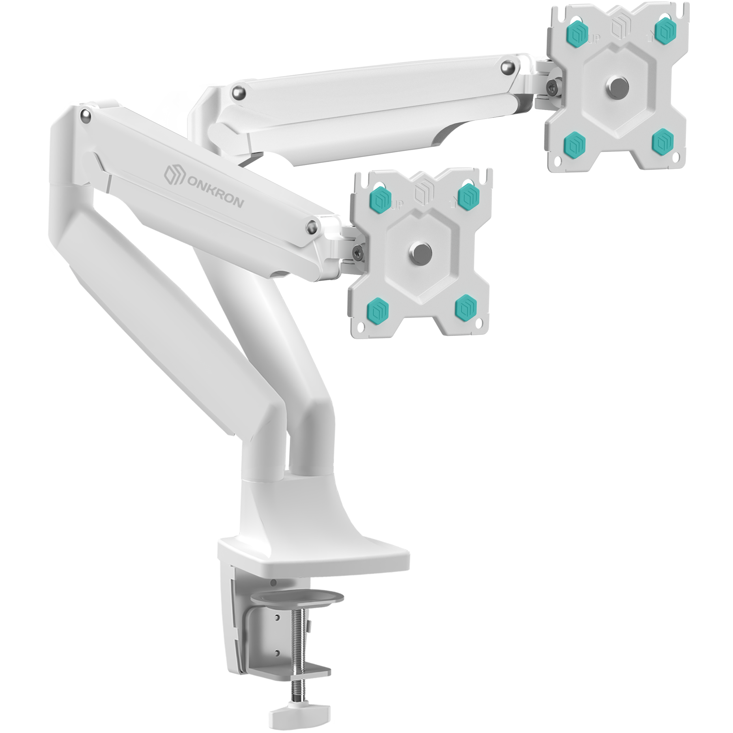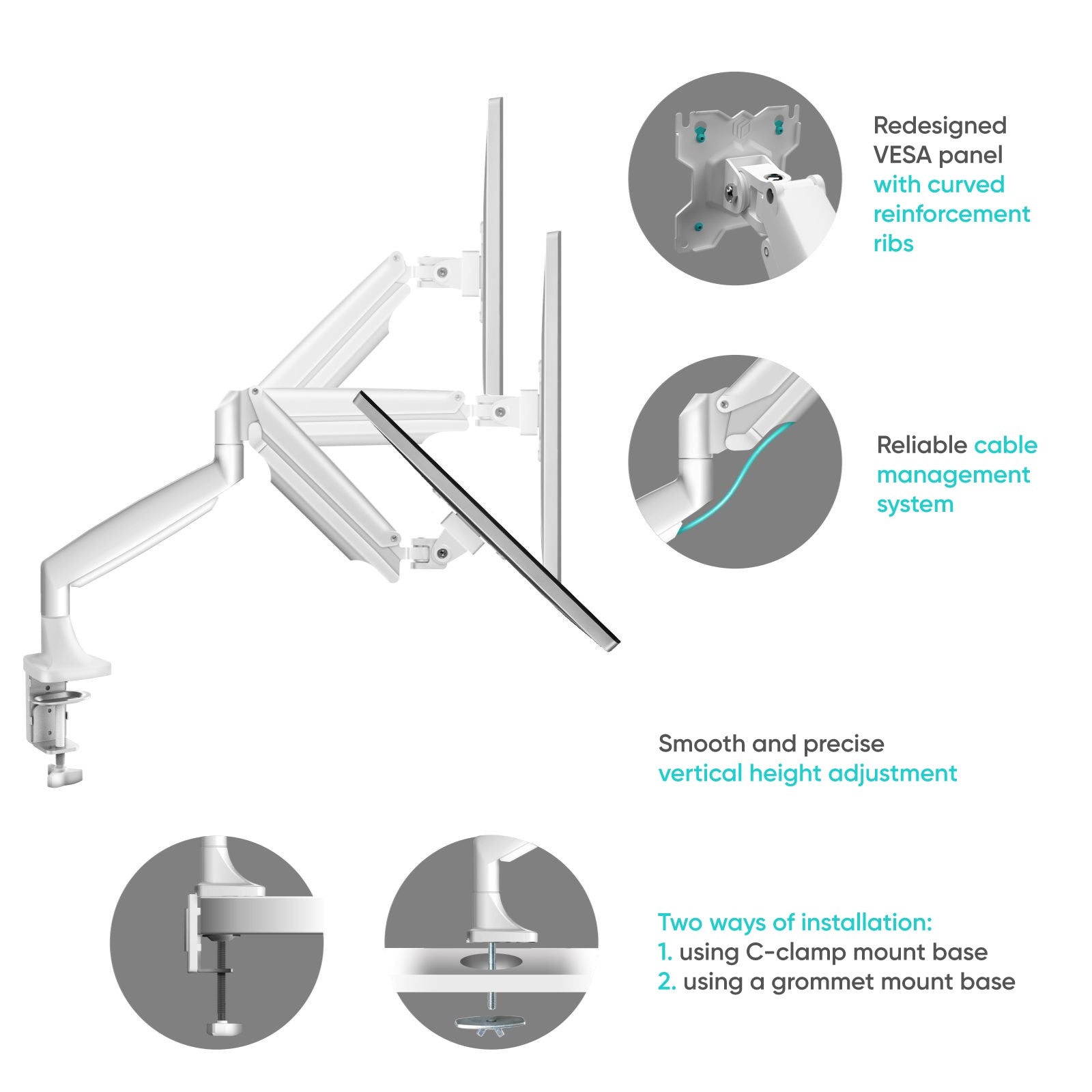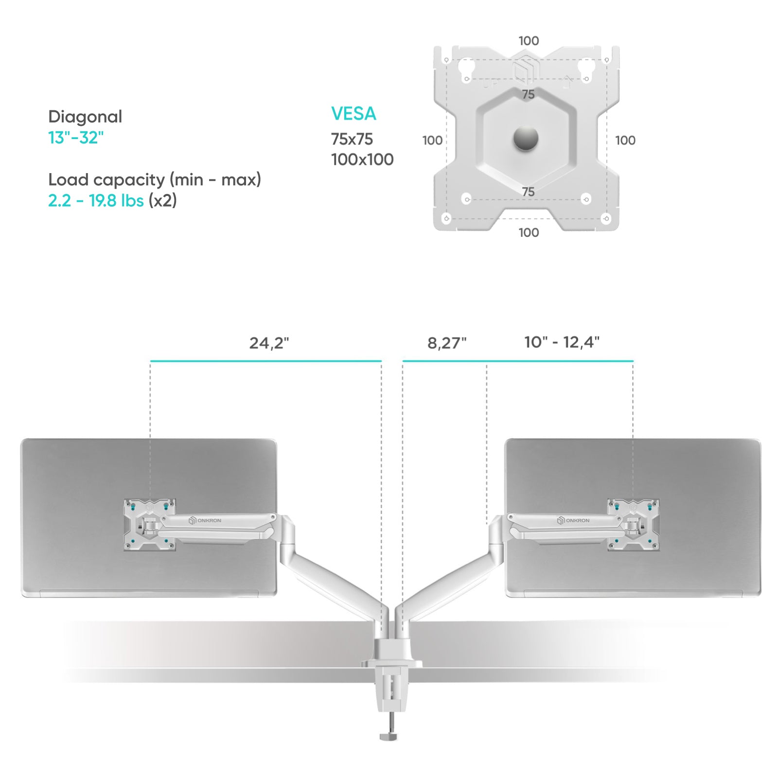Uchwyt biurkowy dla dwóch monitorów 13"-32" maks 9 kg, nachylny i obrotowy, z obracaniem, biały G200