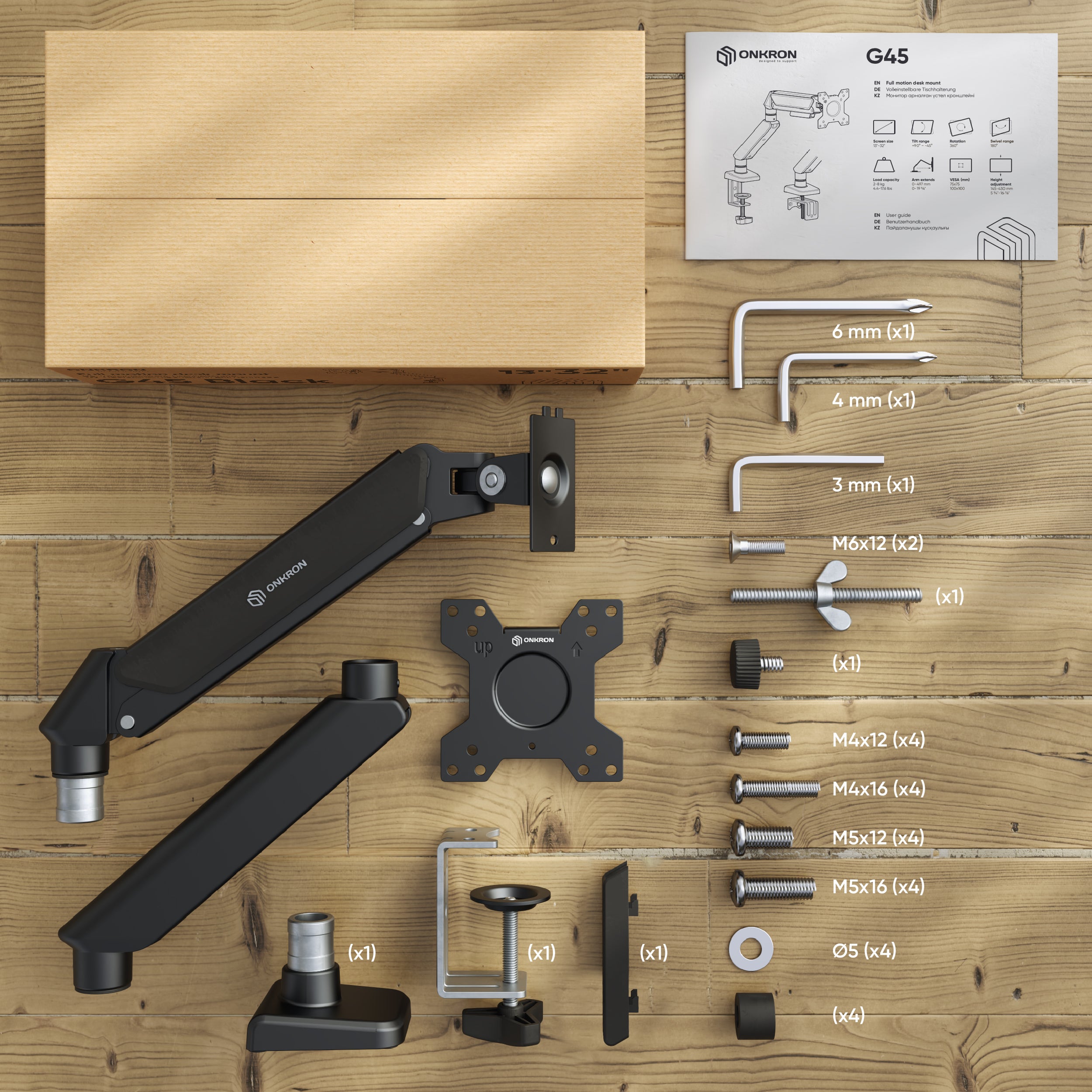 Uchwyt biurkowy dla monitora 13"-32" maks 8 kg, nachylny i obrotowy, z obracaniem, czarny G45