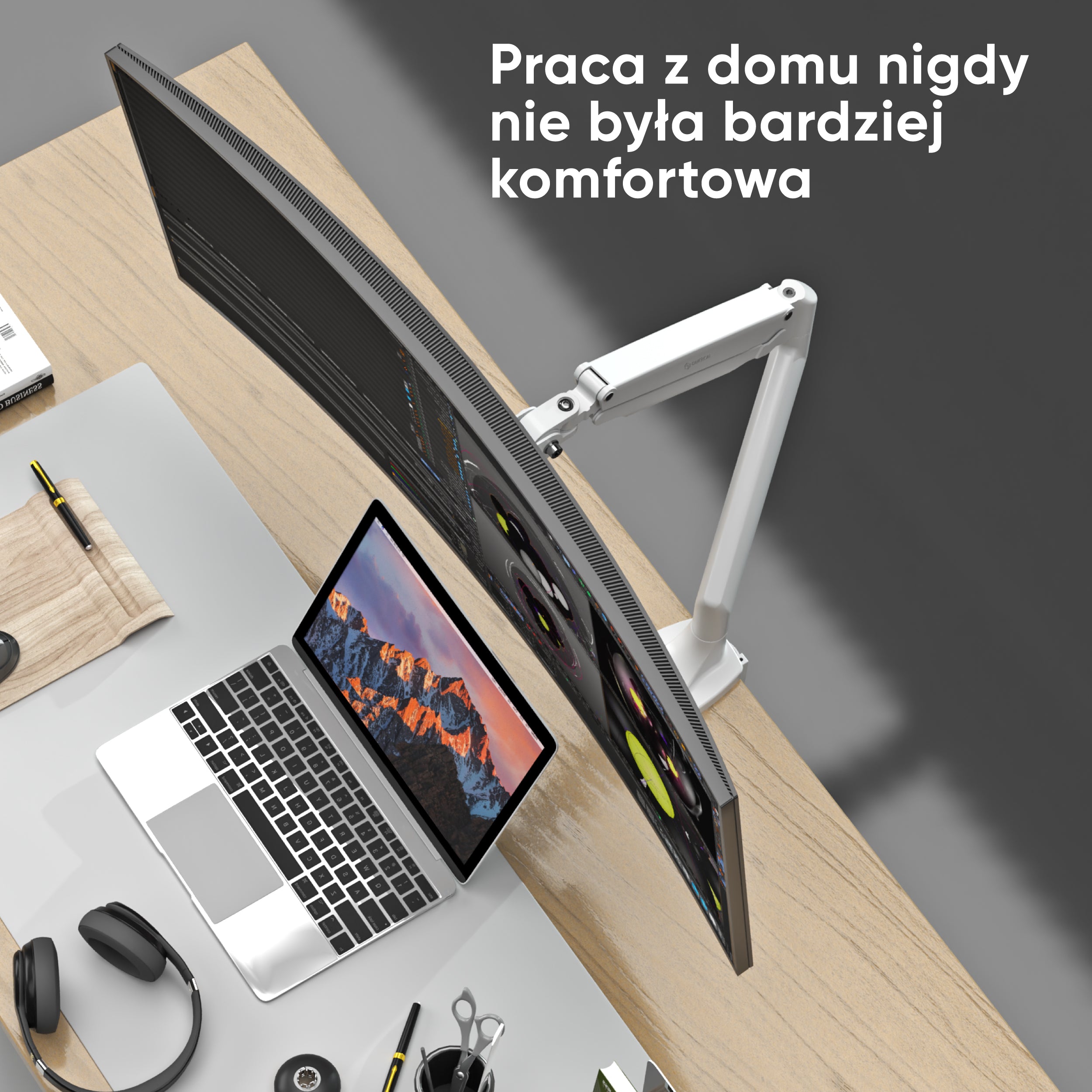 Uchwyt biurkowy dla monitora 13"-32" maks 9 kg, nachylny i obrotowy, z obracaniem, biały G100