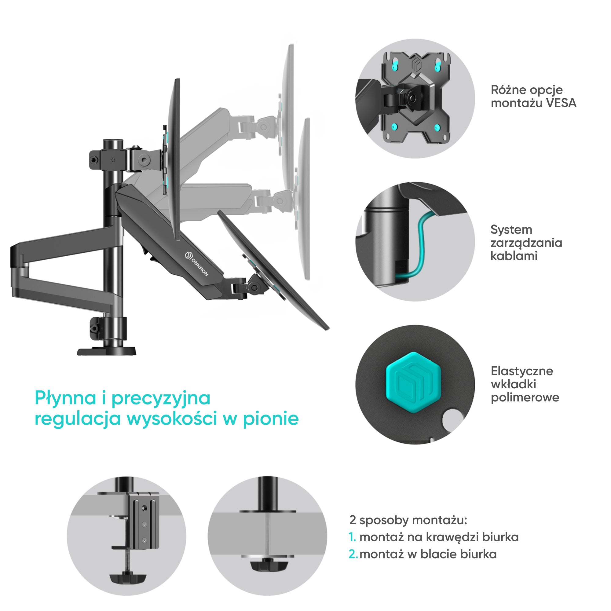 • Uchwyt biurkowy dla monitora 17"-57" maks 27 kg, nachylny i obrotowy, z obracaniem, czarny G130 Uchwyt biurkowy dla monitora 17"-57" maks 27 kg, nachylny i obrotowy, z obracaniem, czarny G130 429,99 PLN