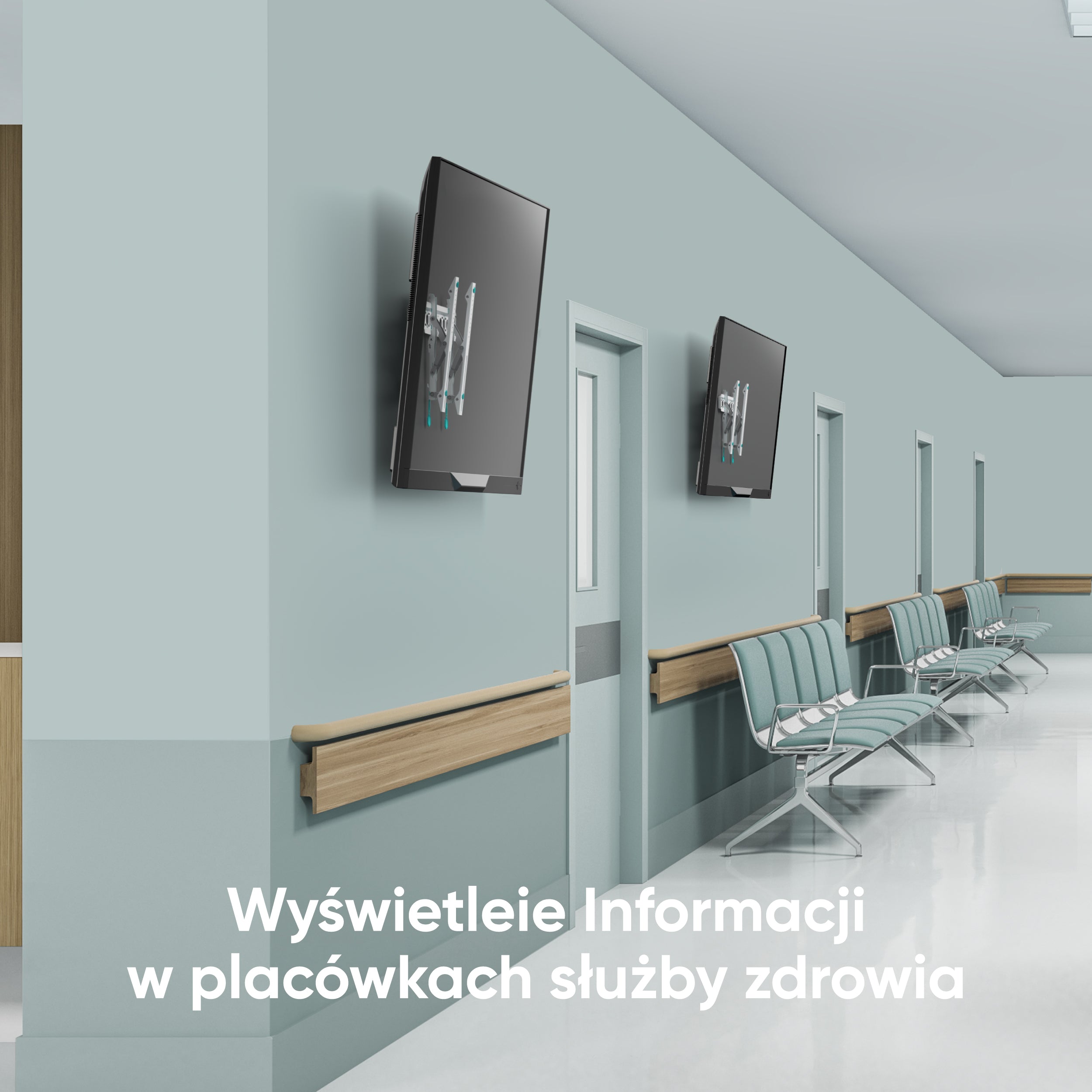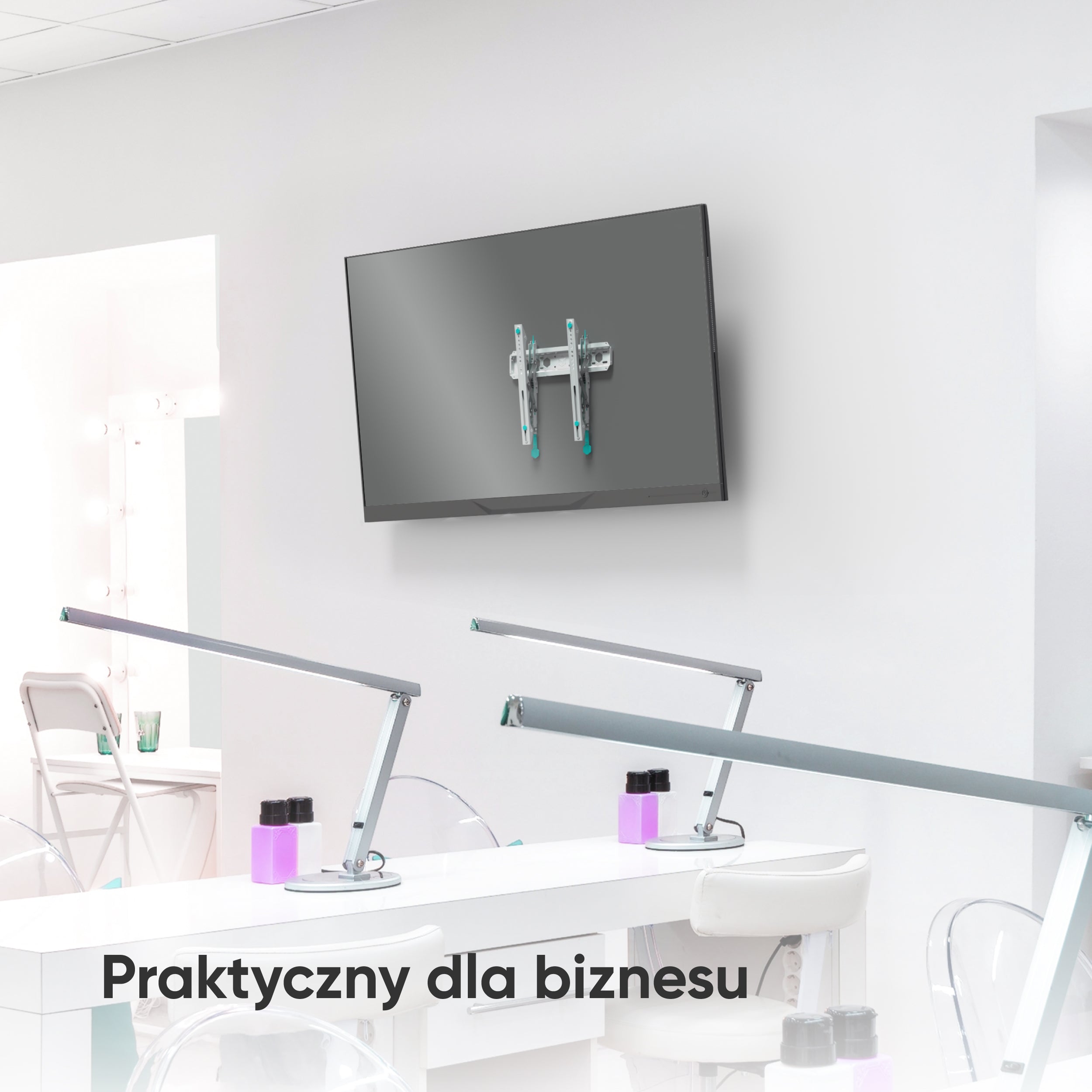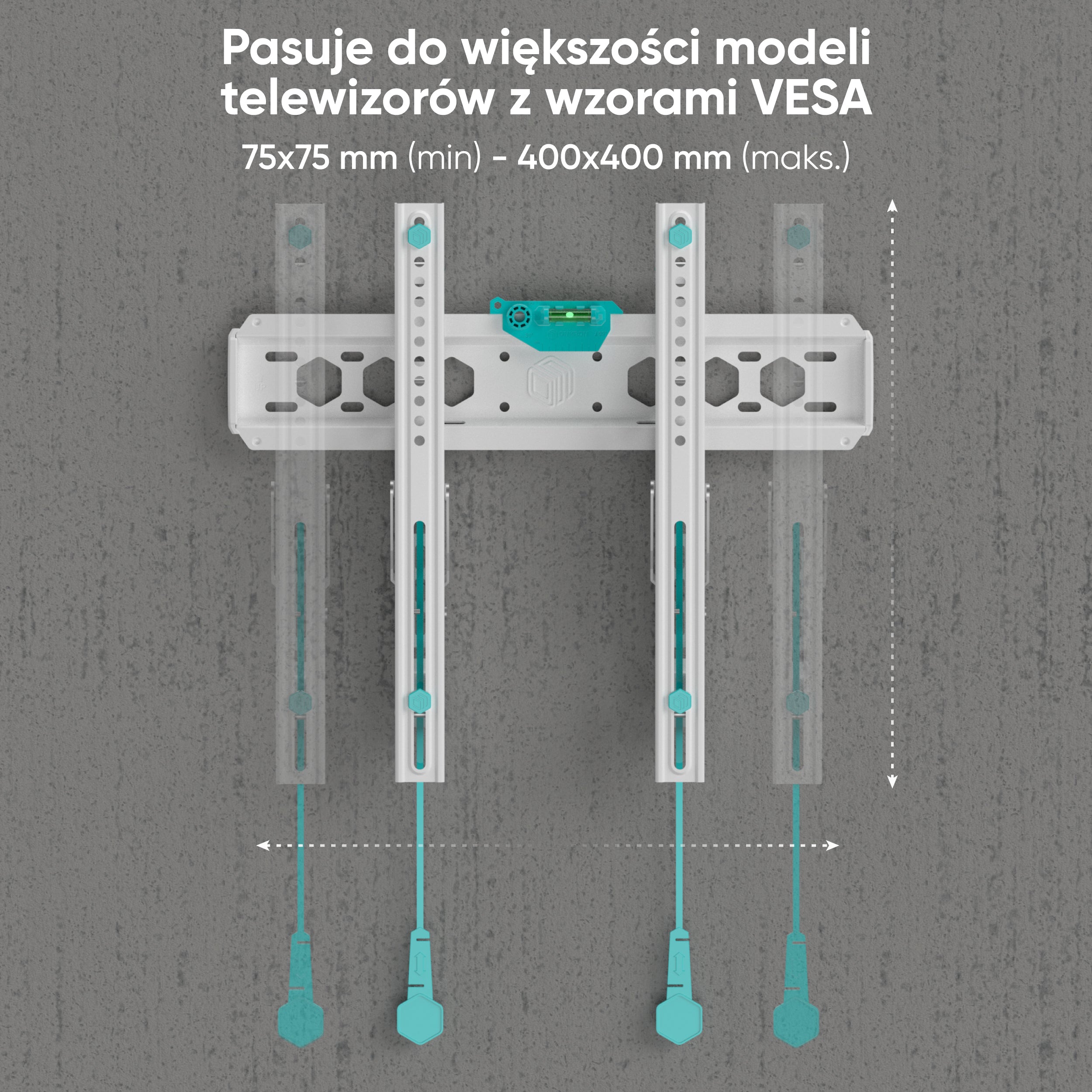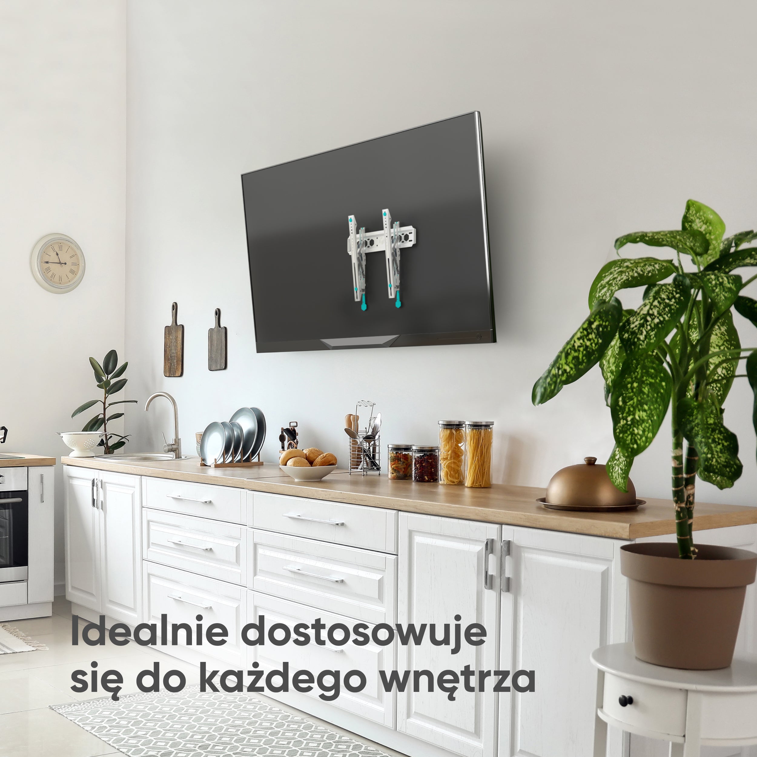 Charakterystyczne turkusowe polimerowe wkładki ONKRON chronią tył telewizora przed uszkodzeniami mechanicznymi.