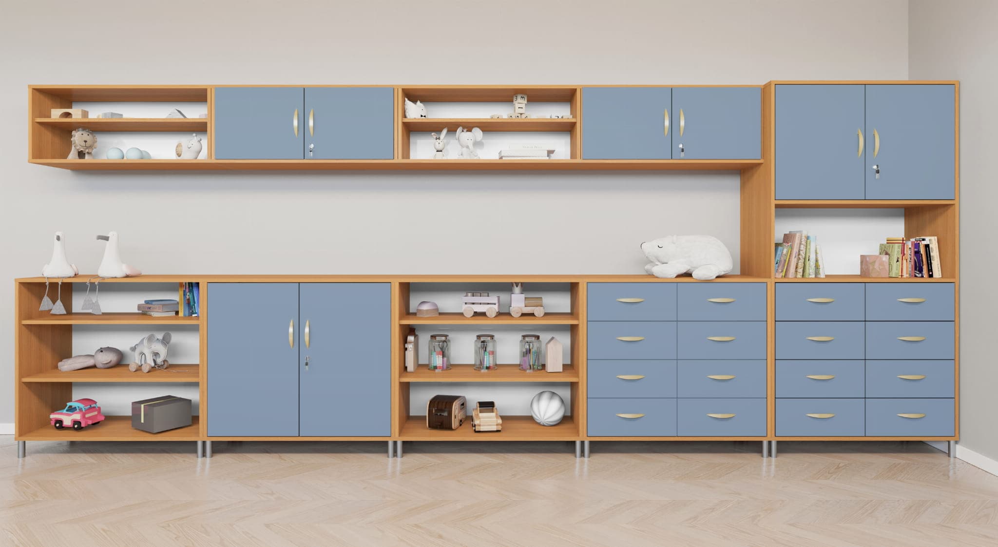 - Primo 305 Wymiar (WxSxG) 1890 x 940 x 450 mm. Wykonana z płyty laminowanej 18 mm. Fronty szafy z płyty kolorowej lub w kolorze korpus – kolor do wyboru. W górnej szafce 2 przestrzenie, na środku otwarta półka, na dole 8 pojemnych szuflad. Górna szafka zamykana na zamek z dwoma kluczami. Istnieje możliwość zamontowania zamków z system klucza MASTER. O szczegóły pytaj handlowców. Metalowe uchwyty. Szafa posiada metalowe nóżki z zatyczkami do regulacji poziomu.